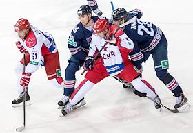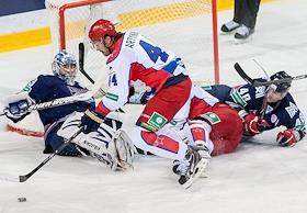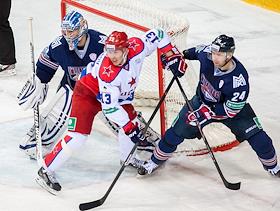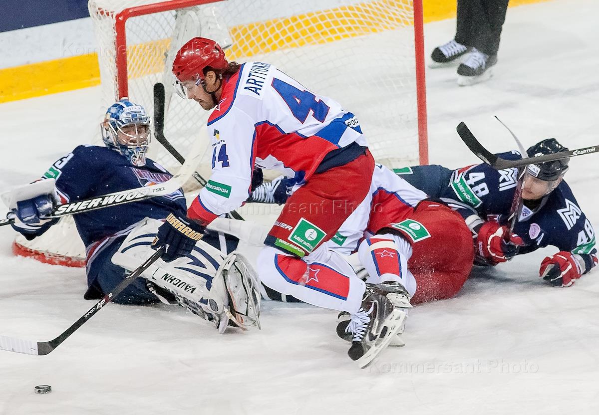 Хоккей. Континентальная хоккейная лига (КХЛ). Сезон 2014/15. Матч между командами "Металлург" и ЦСКА (Москва).