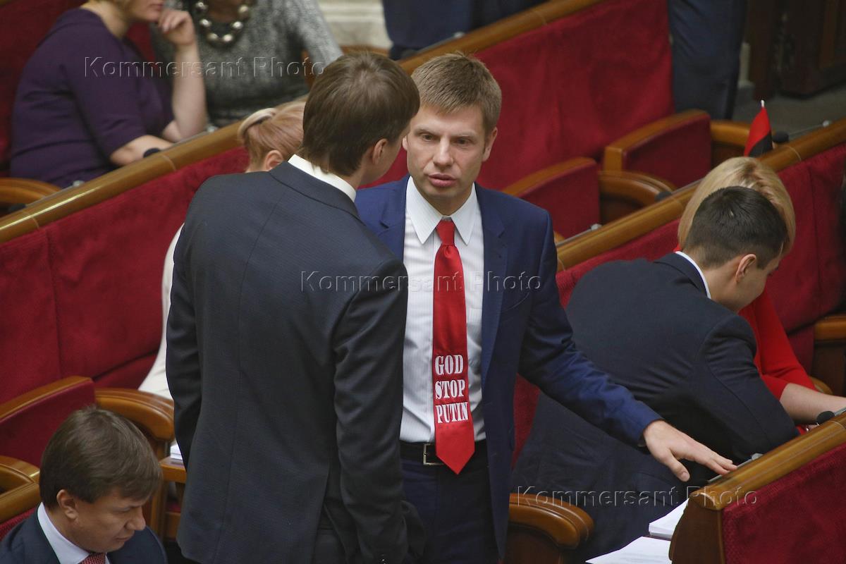 Член депутатской фракции партии "Блок Петра Порошенко" Алексей Гончаренко (в центре) на заседании…