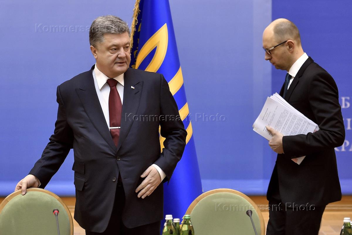 Президент Украины Петр Порошенко (слева) и премьер-министр Украины Арсений Яценюк (справа) на…
