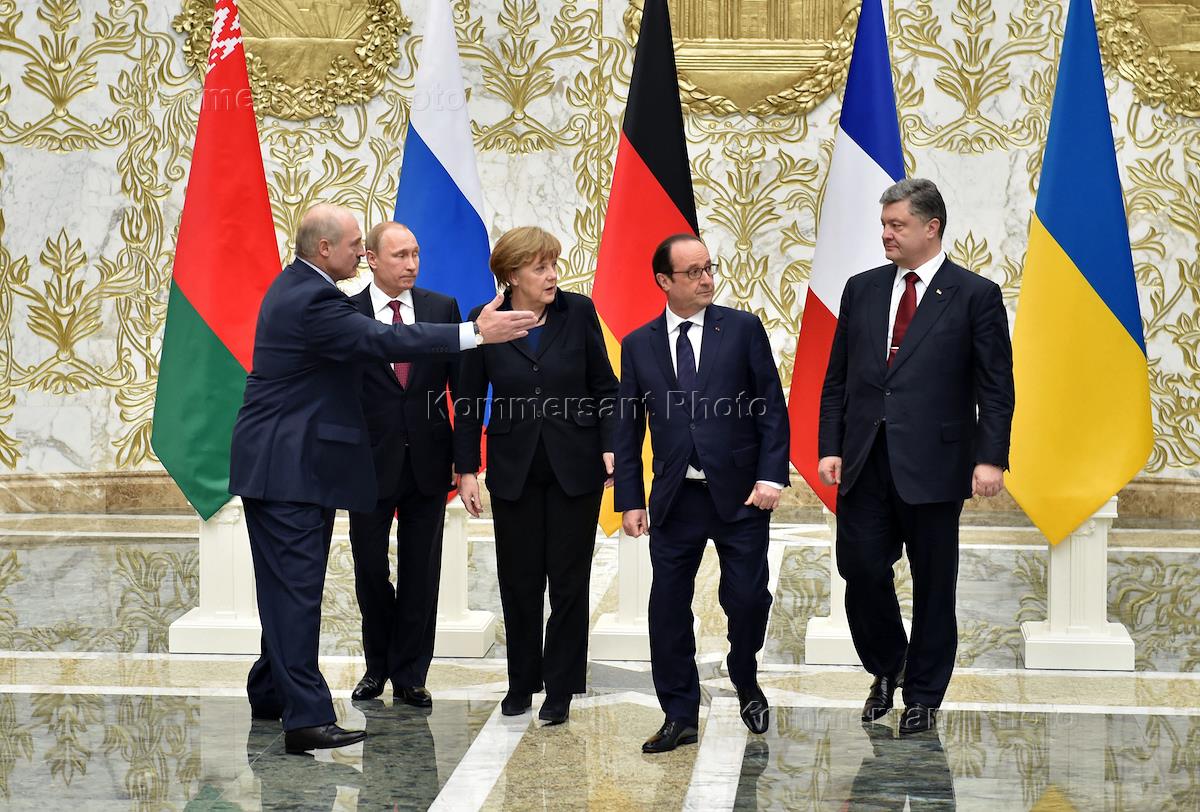 Встреча лидеров "Нормандской четверки" в Минске. Слева направо: президент Франции Франсуа Олланд,…