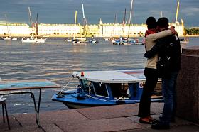 Жанровая фотография. Виды Санкт-Петербурга. Женщина с мужчиной в объятиях друг друга на Набережной…