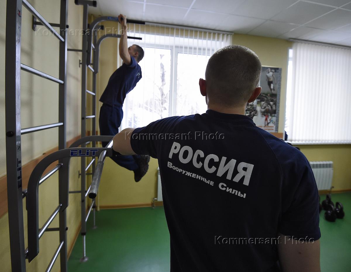 Занятия в спортивном зале для военнослужащих-операторов научной роты Войск воздушно-космической…
