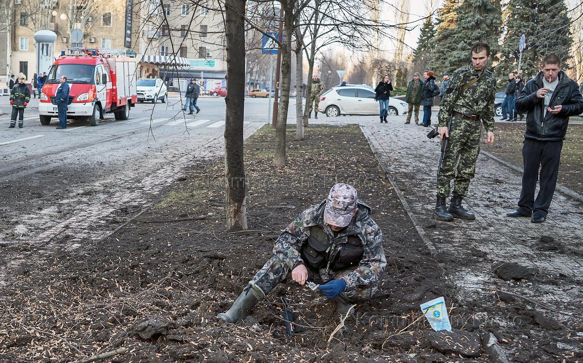 Ополченцы на месте разрыва снарядов Украинских военных.