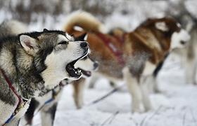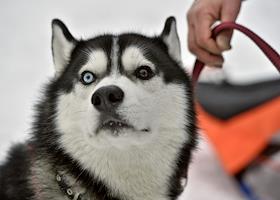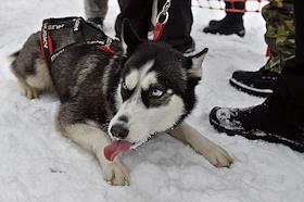 Юниорская гонка на собачьих упряжках прошла на лыжной базе "Молжаниново". Собака породы хаски.