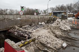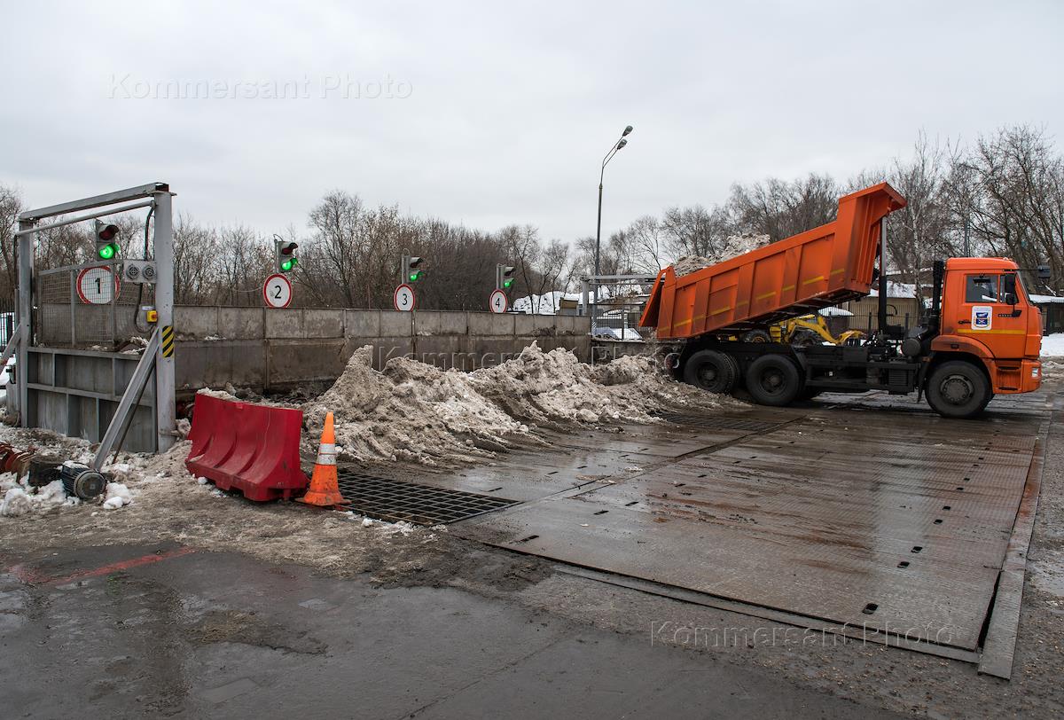 Работа ОАО "Мосводоканал". Утилизация снега на стационарном снегоплавильном пункте