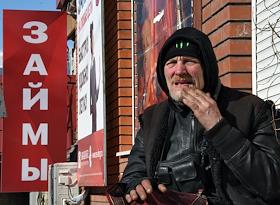 Жанровая фотография. Мужчина устоит у вывески "Займы".