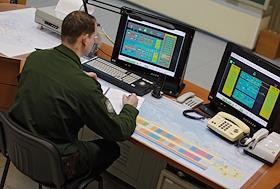 Дежурный расчет на командном пункте радолокационной станции "Воронеж" воздушно-космических войск…