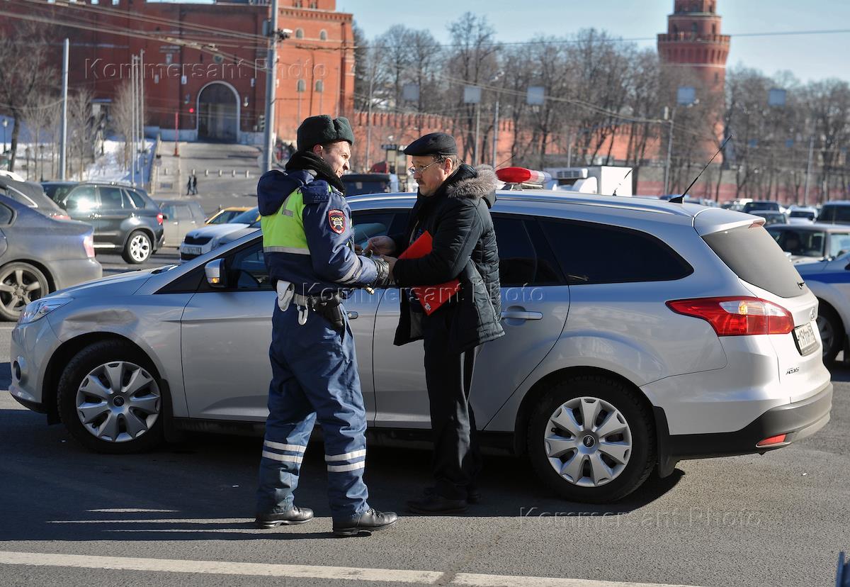Жанровая фотография. Сотрудник ДПС во время проверки документов у владельца автомобиля.