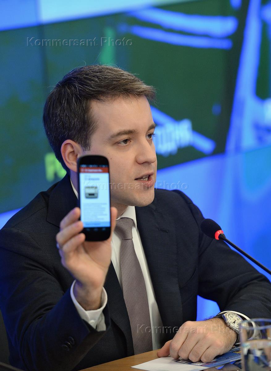 Директор по новым услугам оператора сотовой связи "МЕГАФОН" Дмитрий Юмашев во время…