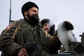 Политическая обстановка в Донецкой области. Ополченцы в маскировочной форме с автоматами на башне…