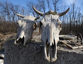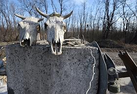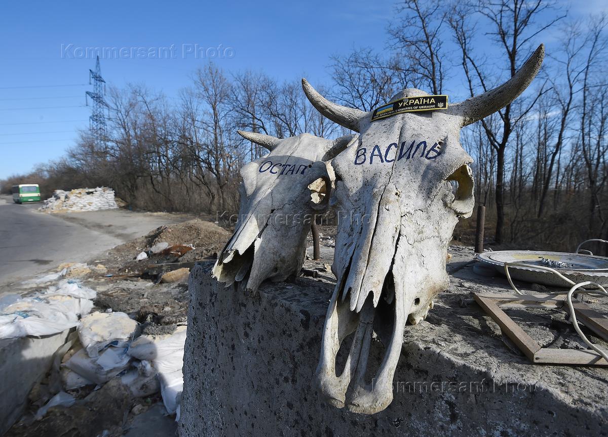 Политическая обстановка в Донецкой области. жанровая фотография. Черепа коров с надписью "Остап" и…
