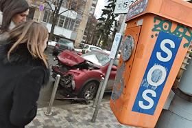 Жанровая фотография. Пострадавший в аварии автомобиль на платной парковке.