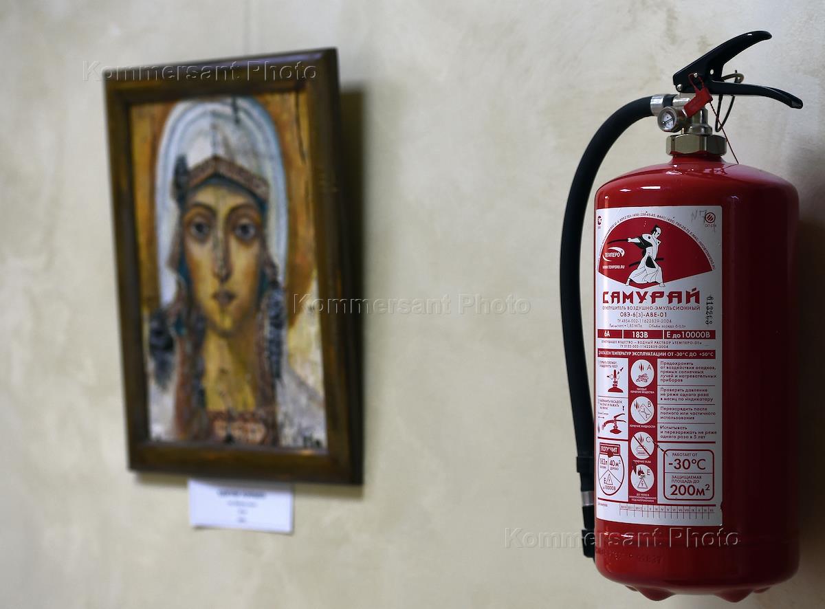 Жанровая фотография. Икона на стене и огнетушитель "Самурай".