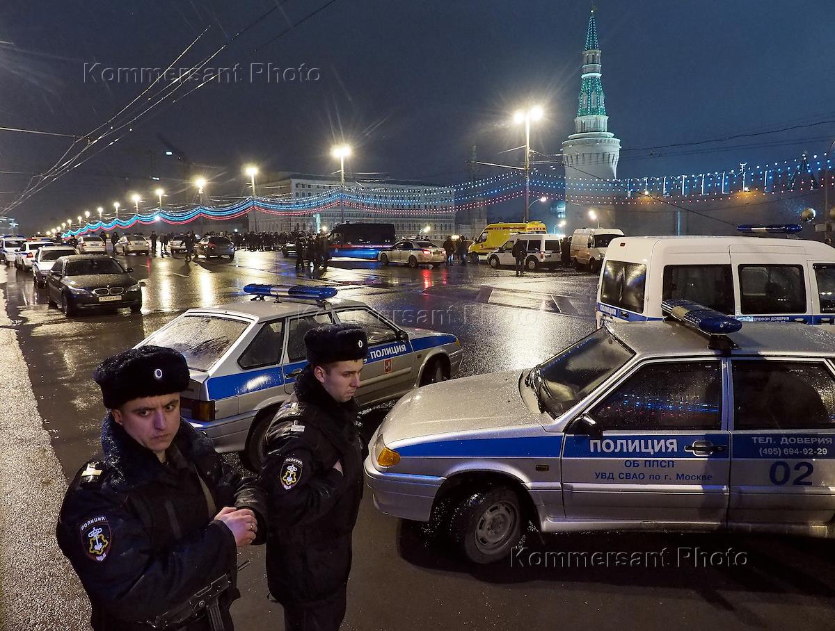 Общество Место убийства сопредседателя политической партии "РПР-ПАРНАС" Бориса Немцова, который был застрелен в ночь с пятницы на субботу на Большом Москворецком мосту.