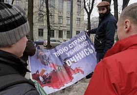 Митинг против снижения минимальной цены на водку, возле здания Федеральной службы по регулированию алкогольного рынка.