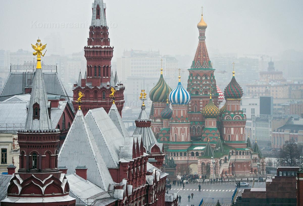 Виды Москвы. Здание исторического музея. Храм Василия Блаженного.