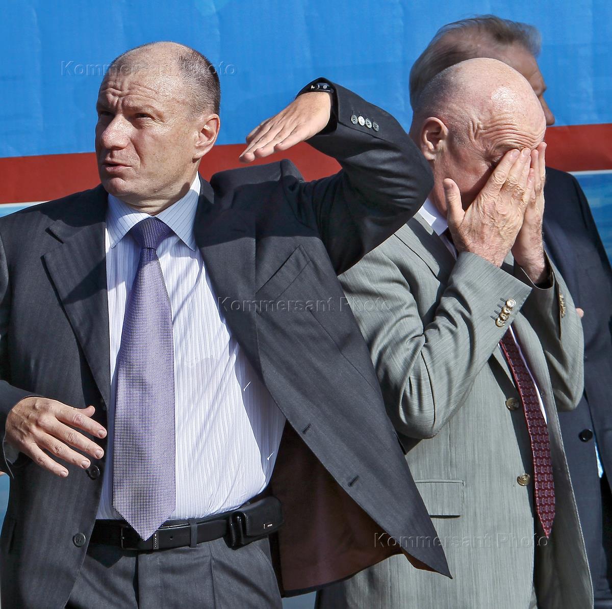 Президент компании "Интеррос" Владимир Потанин (слева) на церемонии закладки первого камня…
