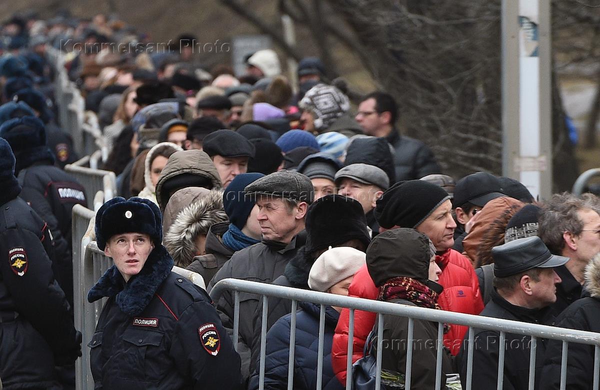 Прощание с сопредседателем политической партии "РПР-ПАРНАС" Борисом Немцовым в Сахаровский центр на Земляном валу. Очередь.