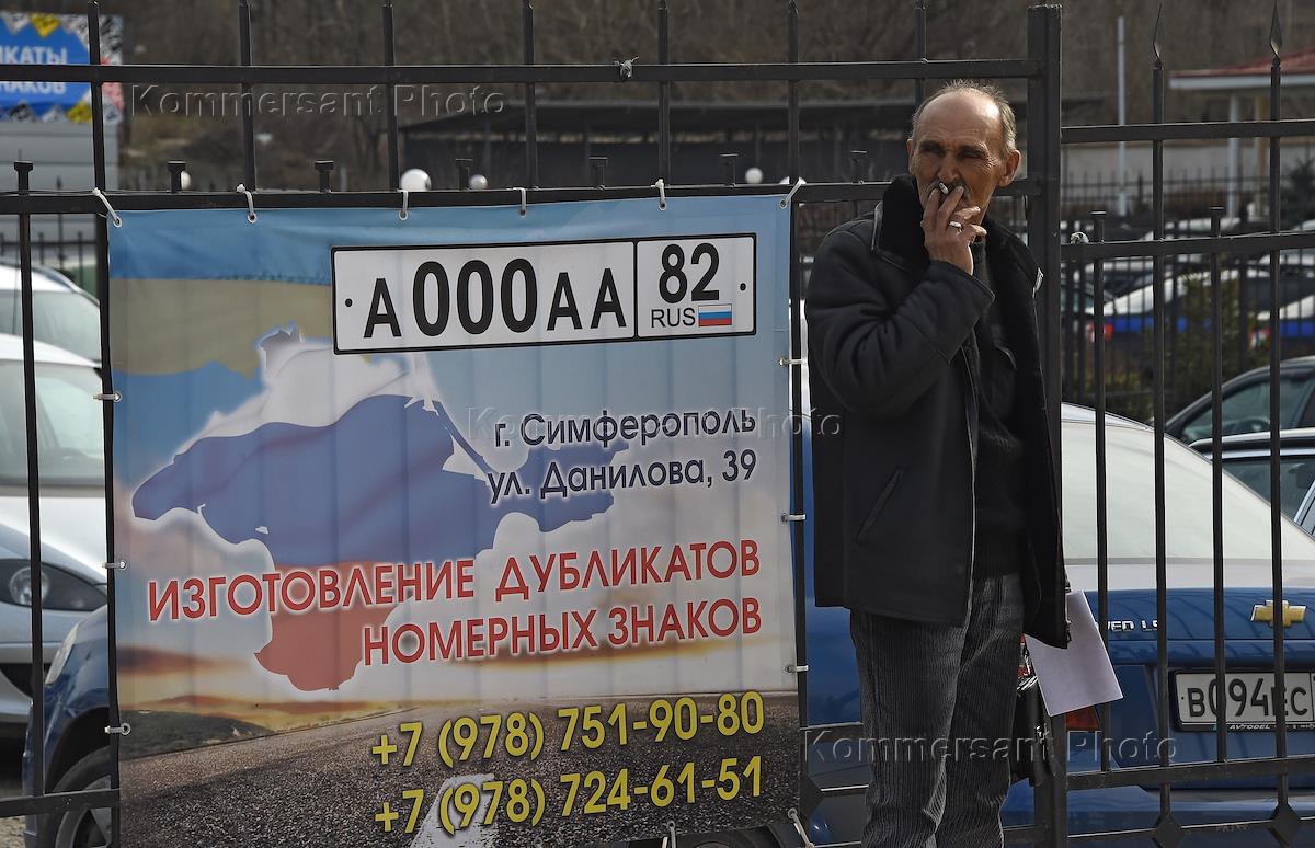 Мужчина держит в руке автомобильный номер ГИБДД Крыма.