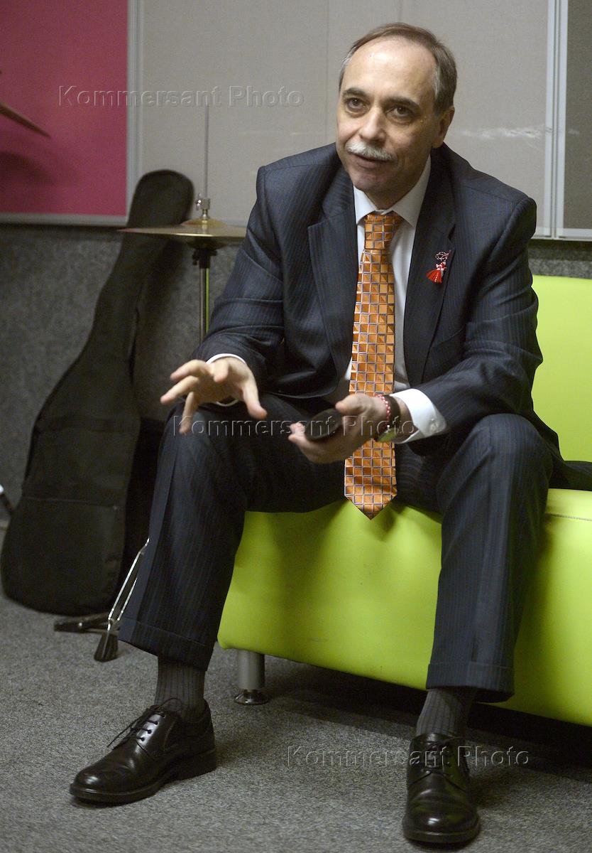 Генеральный продюсер радиостанции "Коммерсантъ FM" Анатолий Кузичев (справа) во время интервью…
