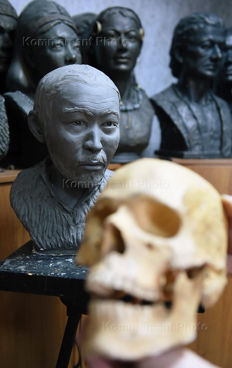 Скульптурный портрет забайкальского человека, воссозданный по черепу, в лаборатории антропологии…