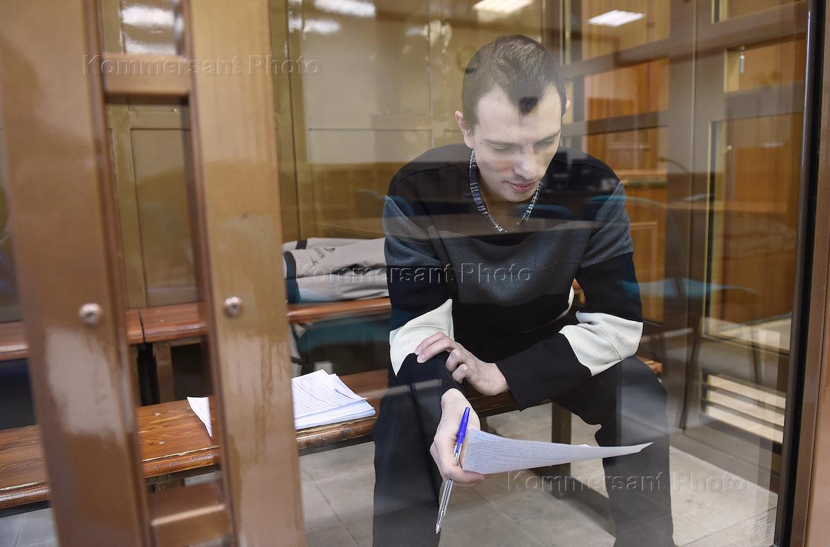 Бывший полицейский Роман Ушаков, обвиняемый в государственной измене, во время заседания Московского…