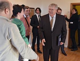 Посол США в России Джон Теффт (слева) в зале редколлегии газеты "Коммерсантъ".
