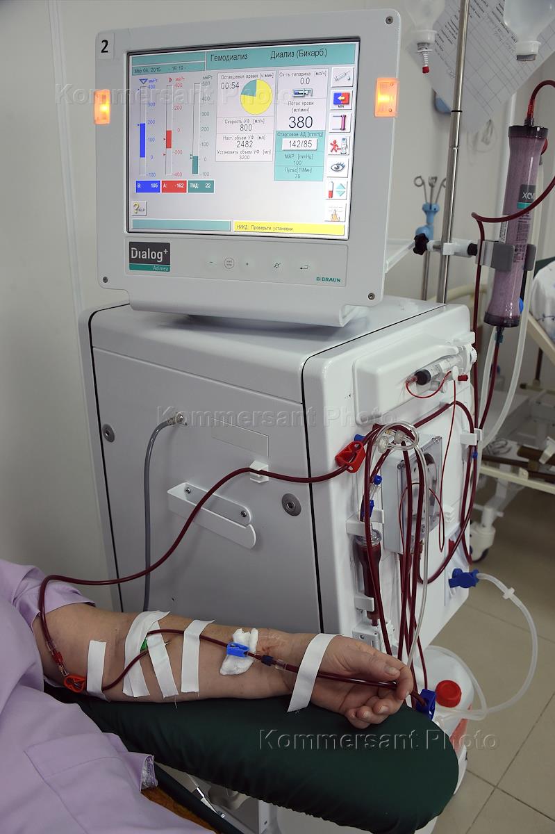 Диализный центр "Крым". Пациент центра на аппарате искуственная почка.