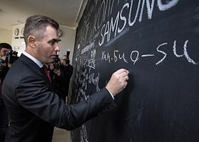 Уполномоченный при президенте России по правам ребенка Павел Астахов во время посещения школы для…
