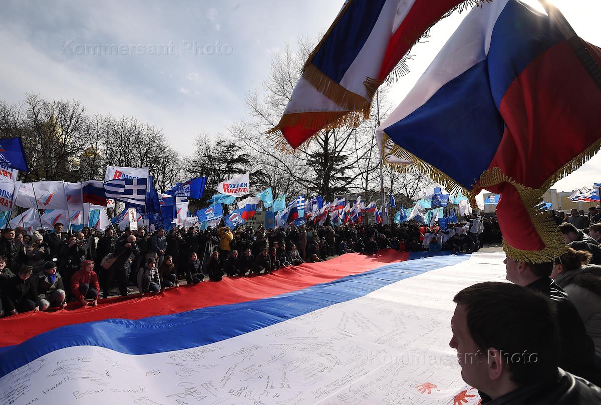 Митинг в честь годовщины проведения референдума о статусе Крыма у здания Государственного совета РК в Симферополе.