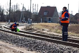Управление путями на жд станции, работники на осмотре железнодорожных путей. г. Зеленоградск, Калининградская область.