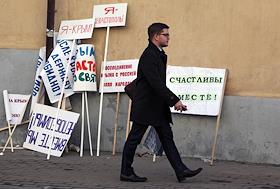 Жанровая фотография. Участники праздничного митинга "Мы вместе!", посвященного годовщине…
