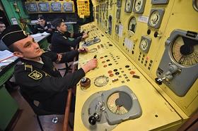 Учения на Северном морском флоте. Военный корабль "Петр Великий" на пирсе в порту Североморска.