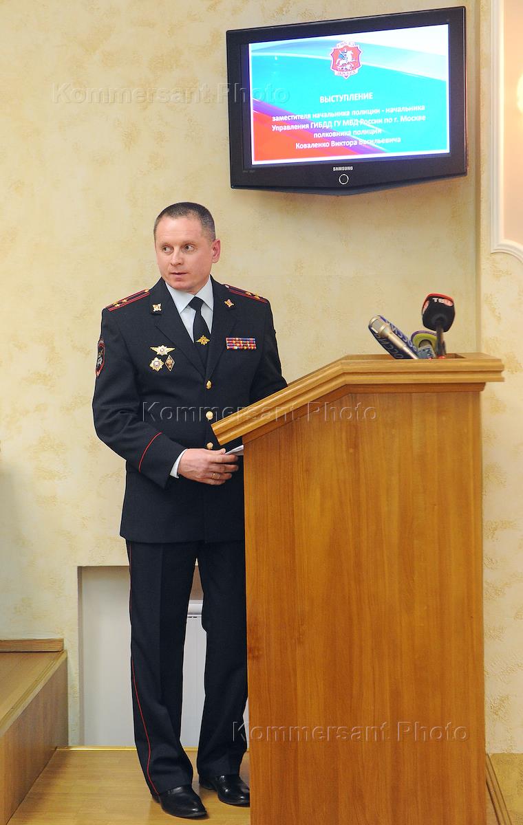Начальник московского ГИБДД полковник полиции Виктор Коваленко во время пресс-конференции.