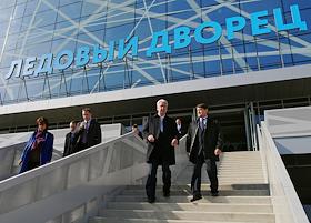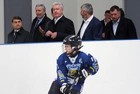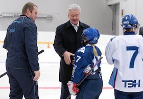 Мэр Москвы Сергей Собянин (в центре) во время посещения Ледового дворца "Парк Легенд" на территории…