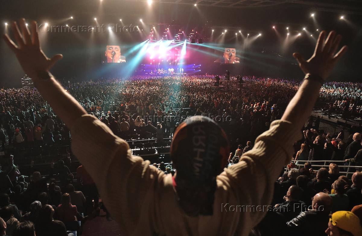 Концерт группы "Чайф" пршел в спорткомплексе "Олимпийский". Участник группы Владимир Шахрин во время…