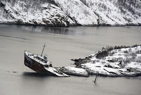 Жанровая фотография. Затонувший корабль в Баренцевом море.