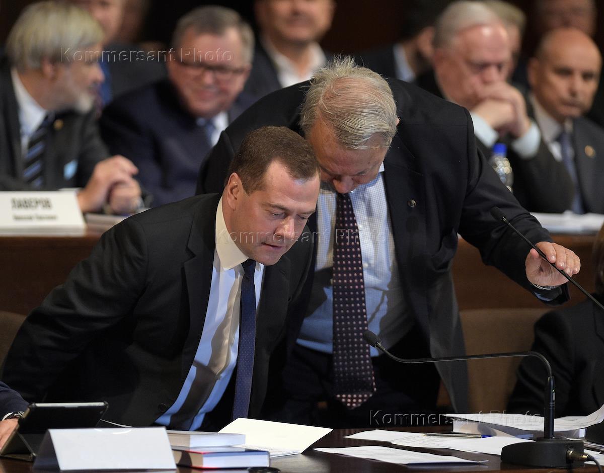 Председатель правительства России Дмитрий Медведев во время общего собрания членов Российской…