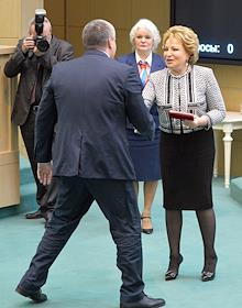 Председатель Совета Федерации Валентина Матвиенко (справа) и председатель Совета министров…