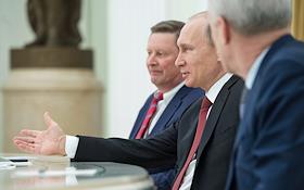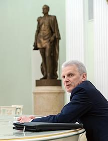 Помощник президента России Андрей Фурсенко во время встречи с лауреатами премий президента в области…