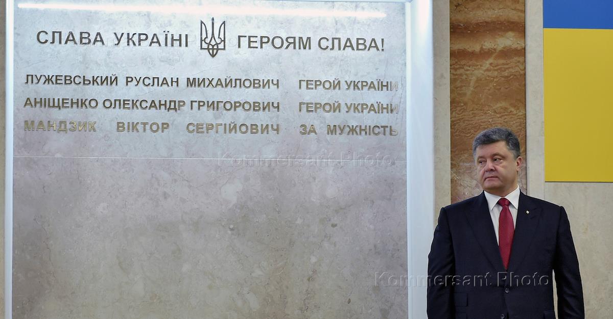 Президент Украины Петр Порошенко (слева) во время торжественных мероприятий по случаю 23-й годовщины…