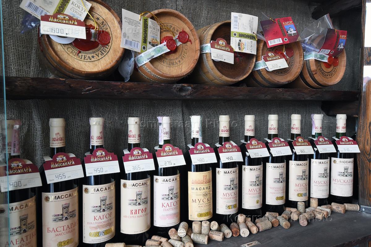 Вино "Массандра" в продаже в специализированном винном магазине в Алуште.