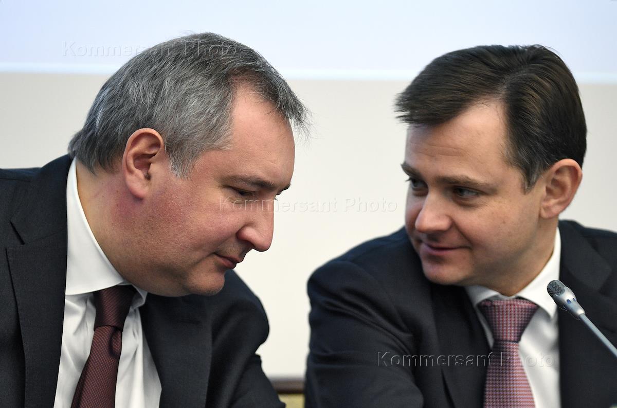 Заместитель председателя правительства России Дмитрий Рогозин (слева) и министр образования и науки…