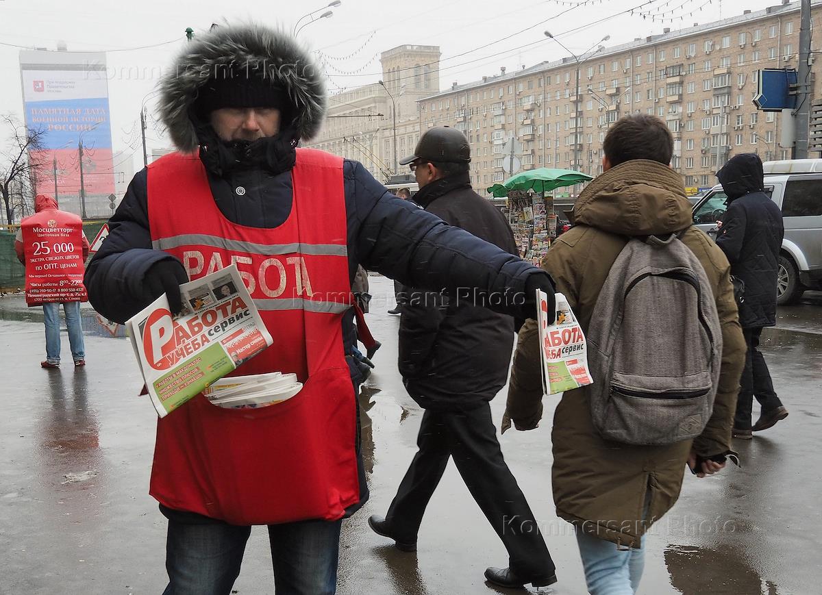 Жанровая фотография. Раздатчик газеты "Работа,учеба" у станции метро Сокол.