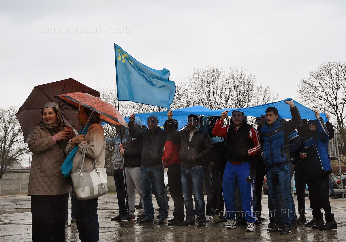 Местные жительницы во время акции в поддержку крымско-татарского телеканала ATR. С 1 апреля из-за…