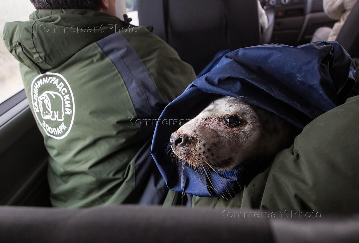 Сотрудники Калининградского зоопарка спасают раненого тюленя, найденного на берегу Балтийского моря.