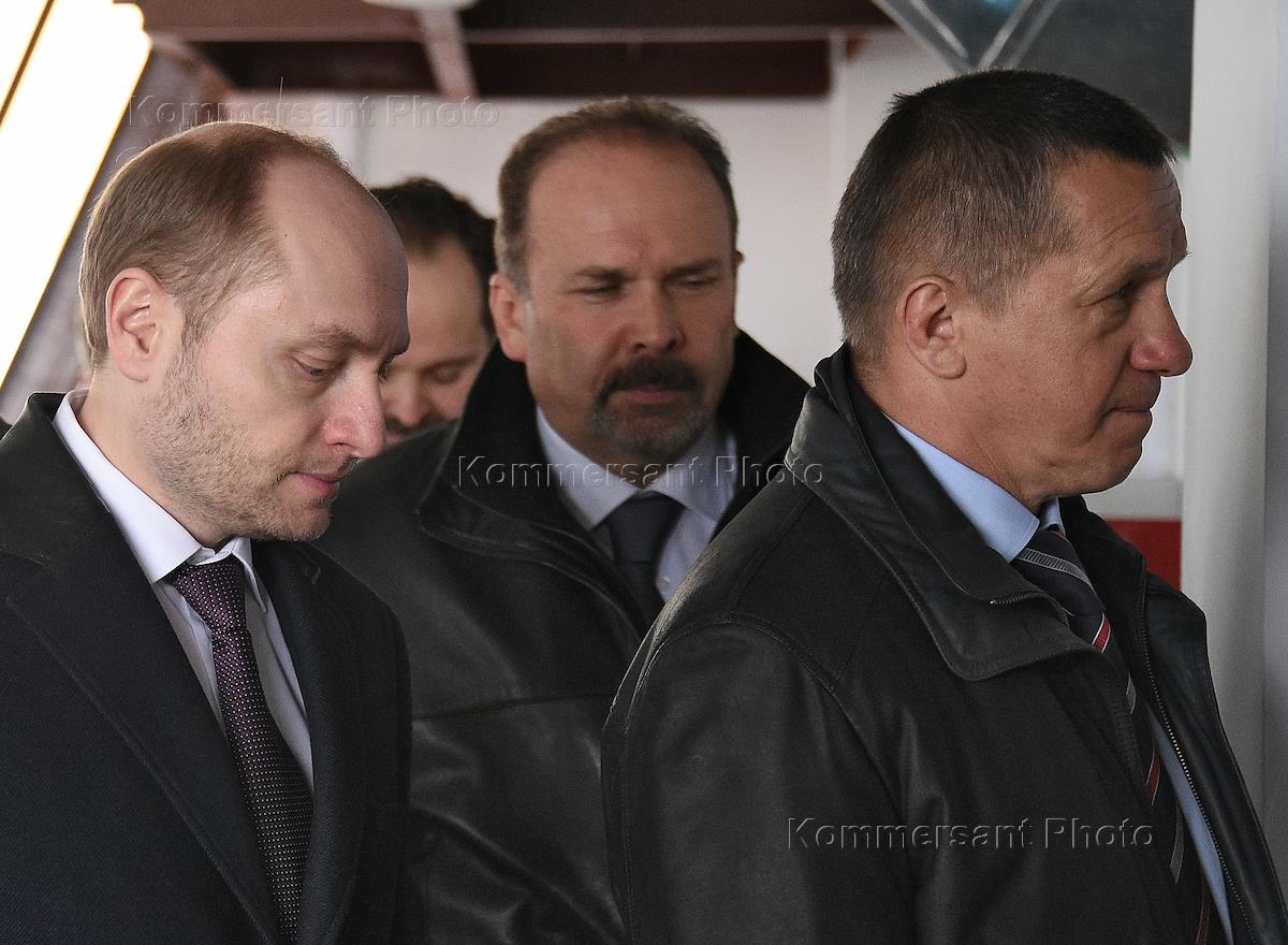 Губернатор Хабаровского края Вячеслав Шпорт (в центре) и председатель правительства России Дмитрий…