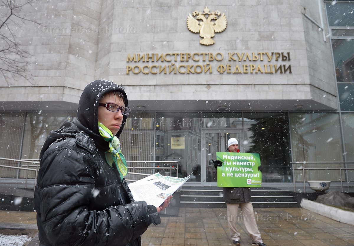 Пикеты активистов партии "Яблоко" с требованиями отправить в отставку министра культуры России…