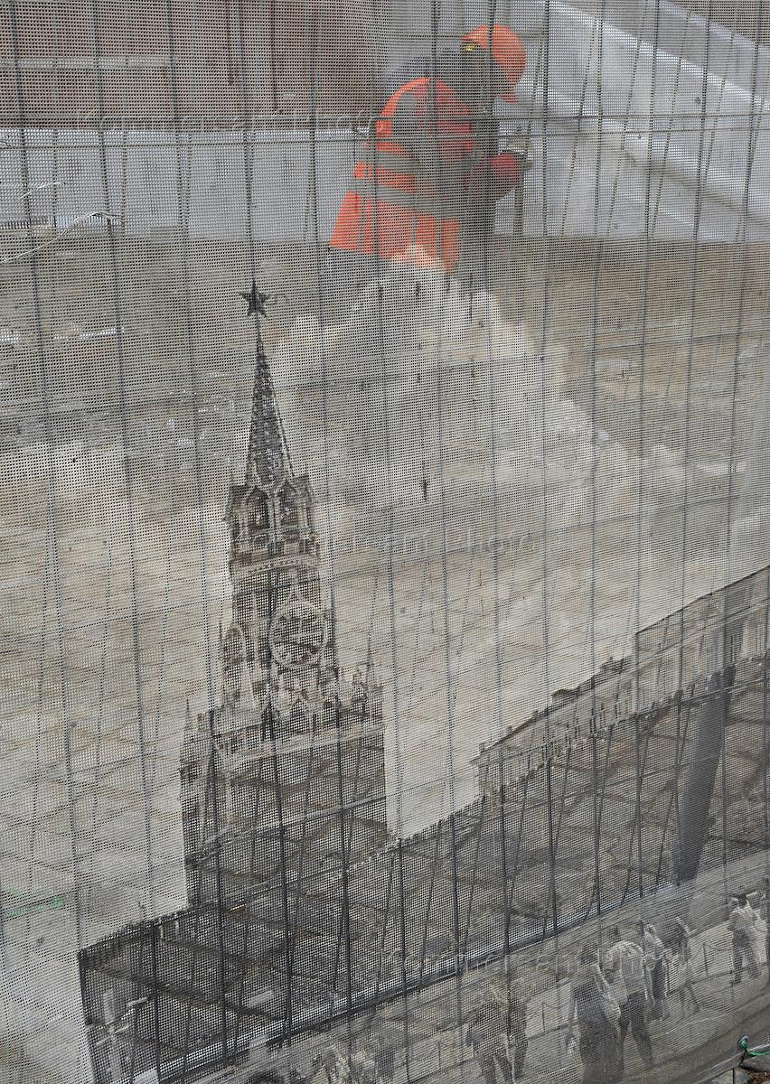 Жанровая фотография. Защитная сетка на месте ремонтных работ на Красной площади.