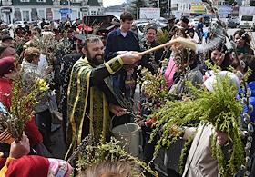 Жанровая фотография. Вербное воскресенье. Священник во время церемонии освящение веток вербы.